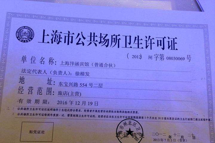 2、上海市公共場所衛(wèi)生許可證原件;